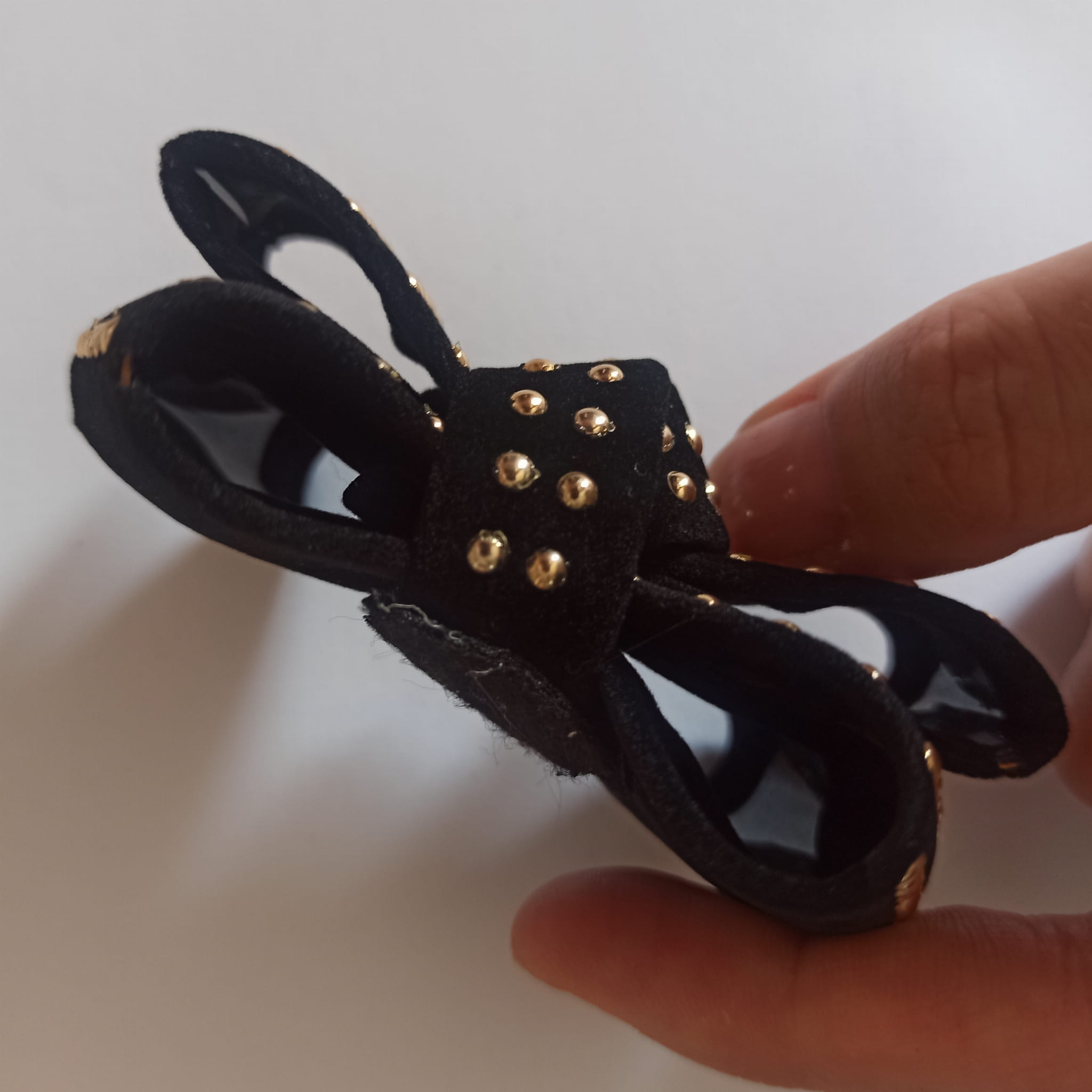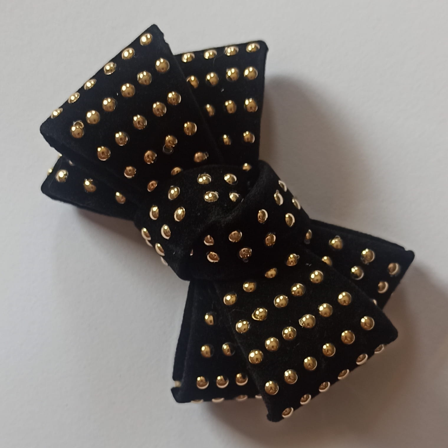 Ozdobna czarna kokarda ze złotymi dżetami