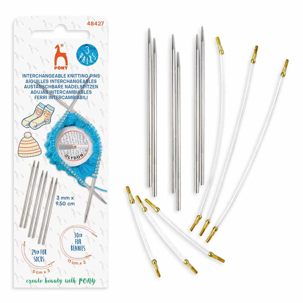 Pony 48427 zestaw drutów z żyłkami wymiennymi do czapek i skarpet. 3mm