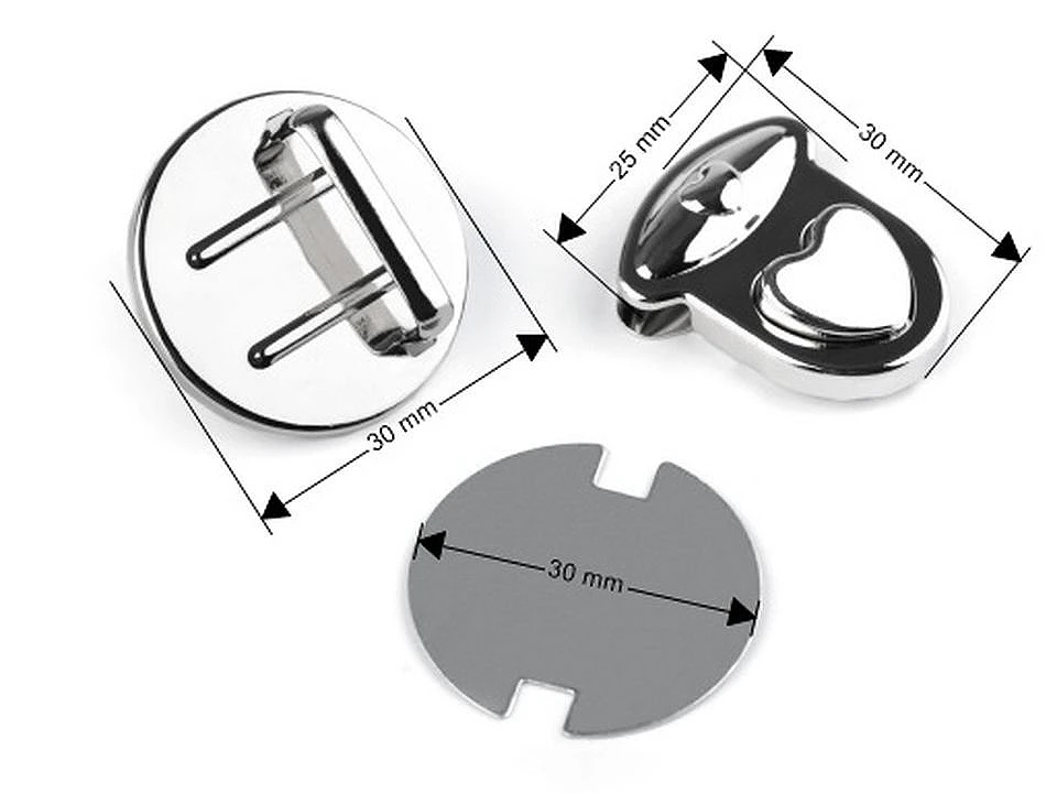 Rozmiary całkowite po zapięciu wynoszą 30 x 32 mm.