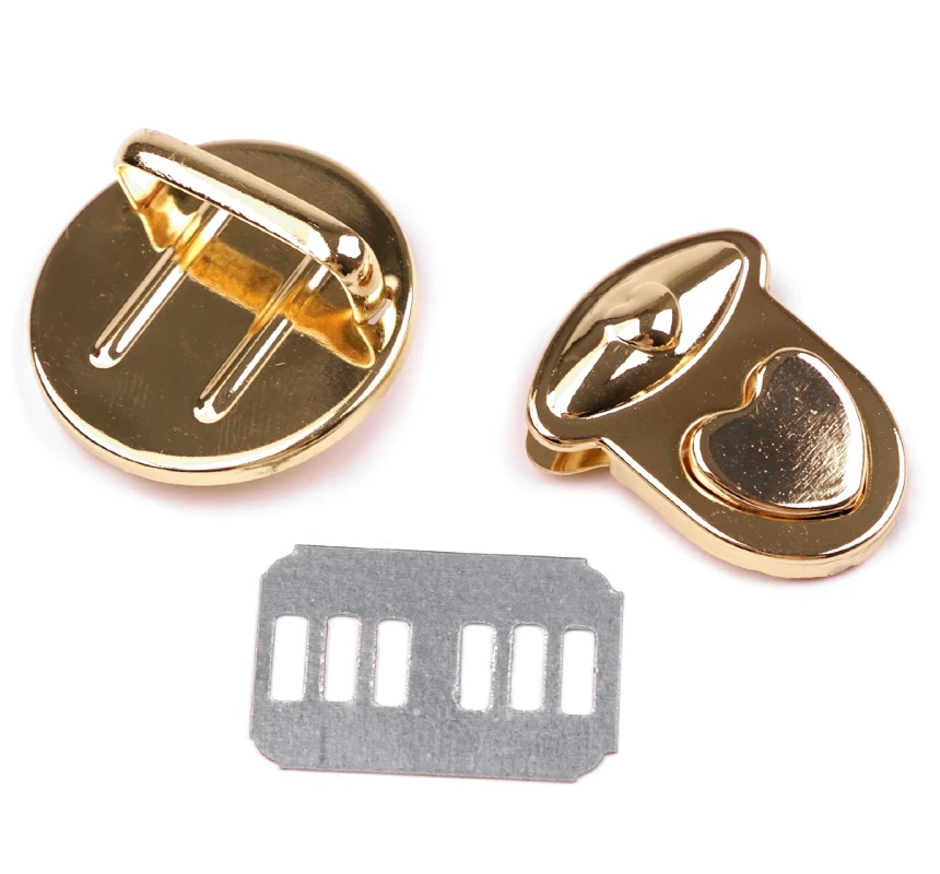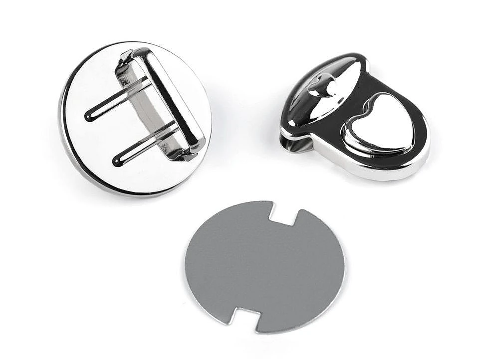 Zapięcie montuje się przy pomocy zaczepów (nie przyszywa ani nie przykleja). Element do torebki wbija się specjalnymi wąsami i od wewnętrznej strony zabezpiecza je blaszką (blaszka może mieć inny kształt, niż na zdjęciu), a następnie wygina wąsy, aby zapięcie pozostało na swoim miejscu. Element z serduszkiem montuje się do klapki nakładając szerszą, rozchyloną część na klapkę a następnie zaciskając ją. Zapięcie ma wewnątrz ząbki, dzięki czemu mechanizm pozostanie na swoim miejscu.
