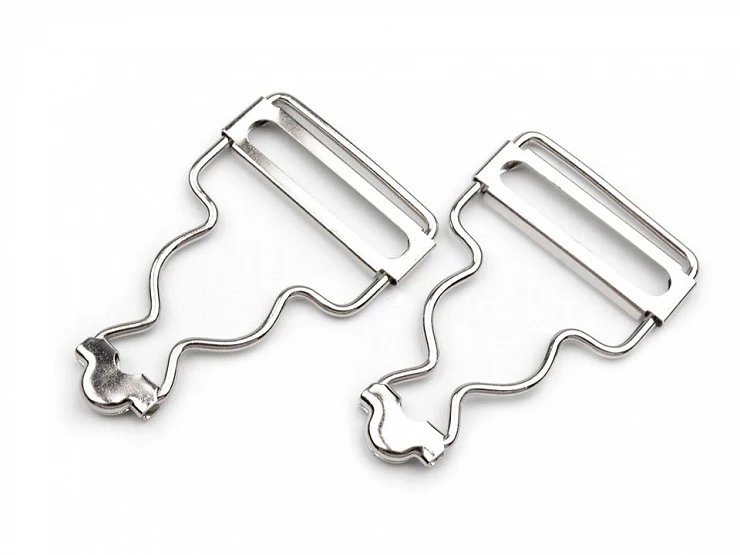 Klamra metalowa (niklowana) w srebrnym kolorze. Do ogrodniczek.